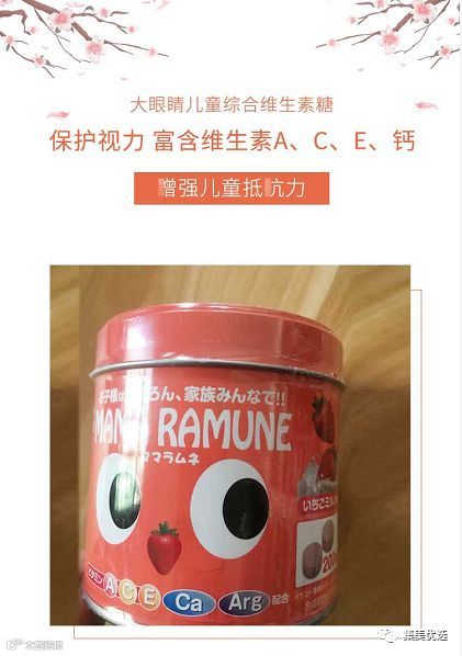 日本MAMA RAMUNE大眼睛儿童维生素糖A+C+E+Ca 200粒 大眼糖,儿童,孕妇都可食用,宝宝的健康,就选大眼睛!孩子们都爱的草莓牛奶溶豆口感,含标准儿童份量的维他命A、C、E、钙和人体所需的氨基酸,使用日本先端技术,入口慢慢融化,易于吸收,不粘牙,备受日本妈妈信赖老少皆宜!”