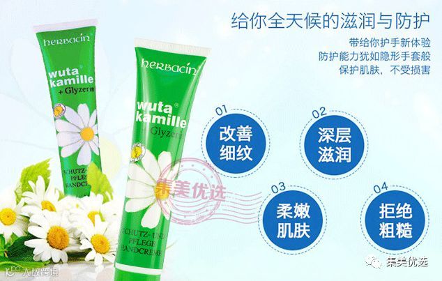 德国赫本清小甘菊护手霜来啦!女人的双手就是第二张脸,必须好好保养德国 herbacin贺本清小甘菊护手霜 管装75ml超滋润不油腻 手龟裂极力推荐,能镇静伤口愈合并有抗老化作用,晚上睡前手脚擦洋甘菊第二天手脚肌肤都滑滑的预防干裂!随身携带也很方便!