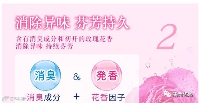含有消臭成分和初开的玫瑰花香,消除异味,持续芬芳