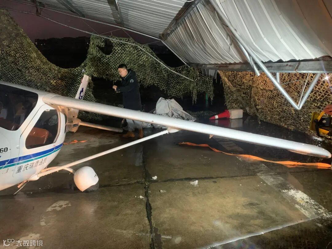 受损原因:被垮塌的机棚砸坏