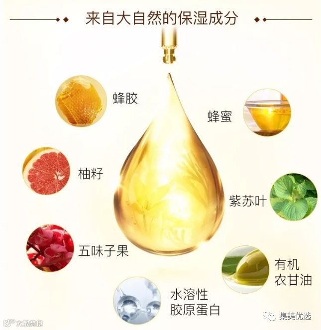 精华液采用天然蜂蜜、蜂胶