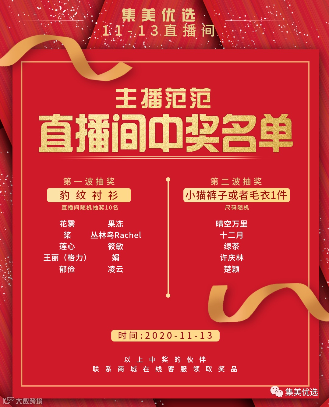 【集美直播间】11月13日直播中奖名单公布!