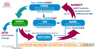 可NAD+分子比较大,外部直接补充的NAD+很难透过细胞膜,进入细胞内部,于是科学家就从NAD的前体开始入手,从而来提升我们体内NAD+的含量。