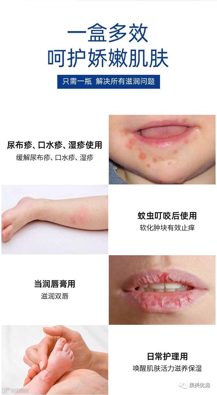 *预防婴儿脸颊,鼻下,唇部及下巴周围皮肤干燥,温柔呵护宝宝娇嫩的肌肤;