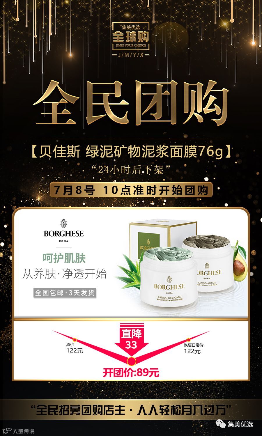 品牌团购 Borghese/贝佳斯贝佳斯美国进口绿泥矿物泥浆面膜76g 限量200份