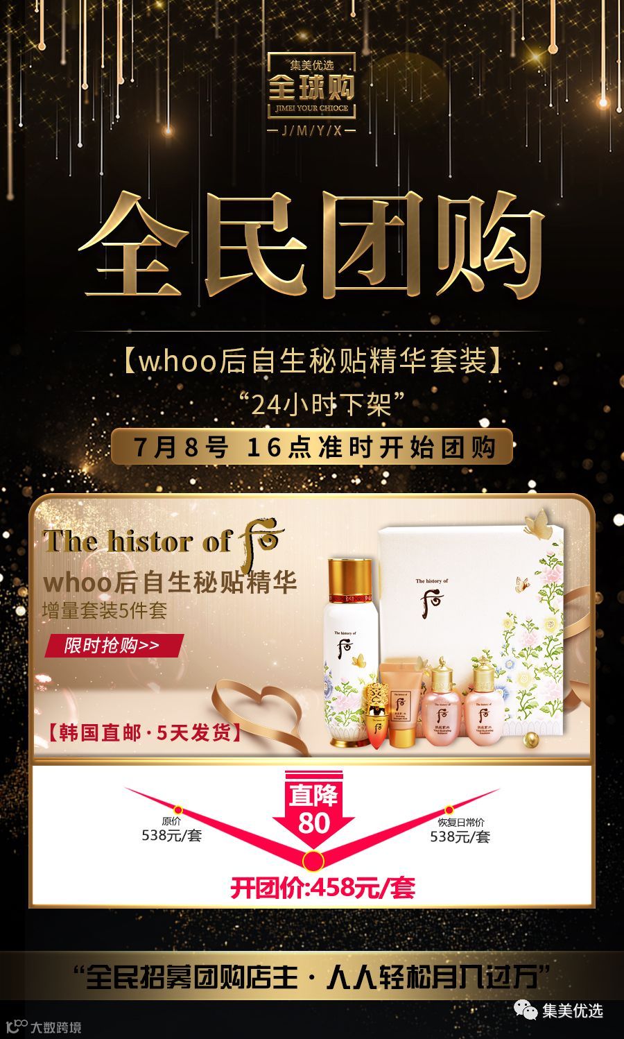 福利团购韩国whoo后自生秘贴循环导入精华增量套装130ml 水前2019年限量版 限量50个