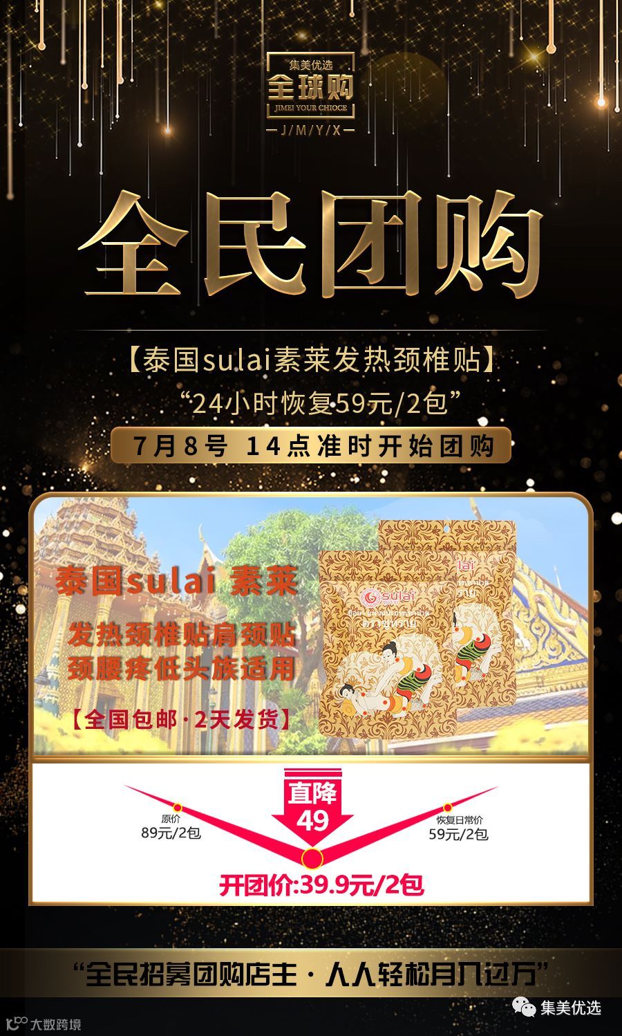 福利团购 泰国sulai素莱发热颈椎贴肩颈贴 颈腰疼低头族适用 2包 限量200份!
