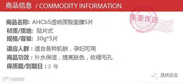 韩国AHC玻尿酸保湿舒缓面膜 5片装