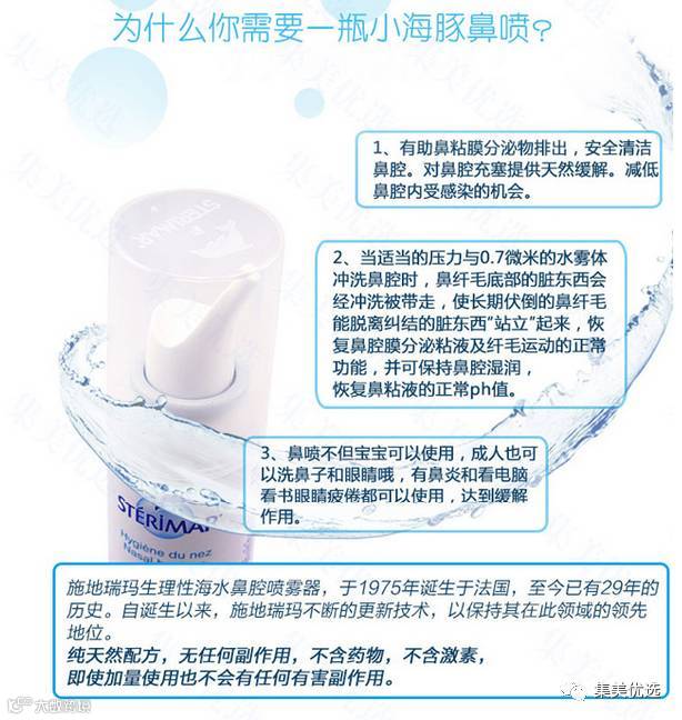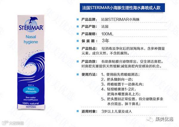 法国Sterimar小海豚生理盐水鼻炎喷雾100ml 成人装/儿童装