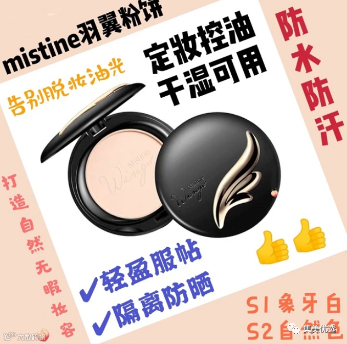 【大牌团购】泰国Mistine Wings 羽翼粉饼 10g 原价:69元 VIP /黑卡M1会员 福利补贴价:49元 泰国的彩妆是很有说服力的, 因为泰国的气候湿热 , 彩妆产品有很高的标准,贴合性要求要高, 长时间不脱妆。 ![]()