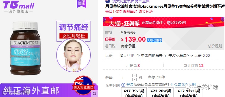 【大牌团购】澳洲Blackmores澳佳宝 月见草油软胶囊 190粒 原价:139元 VIP /黑卡M1会员 福利补贴价:109元 快节奏生活和压力,