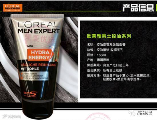 德国原装L’OREAL欧莱雅 男士劲能炭爽双效洁面膏150ml 控油祛痘