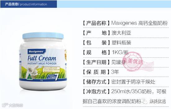 澳洲Maxigenes美可卓 蓝胖子全脂高钙儿童成人奶粉 1kg