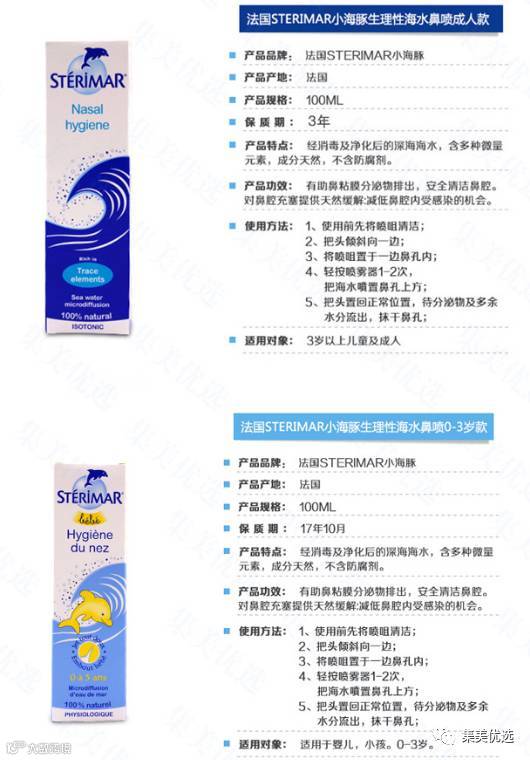 法国Sterimar小海豚生理盐水鼻炎喷雾100ml 成人装/儿童装