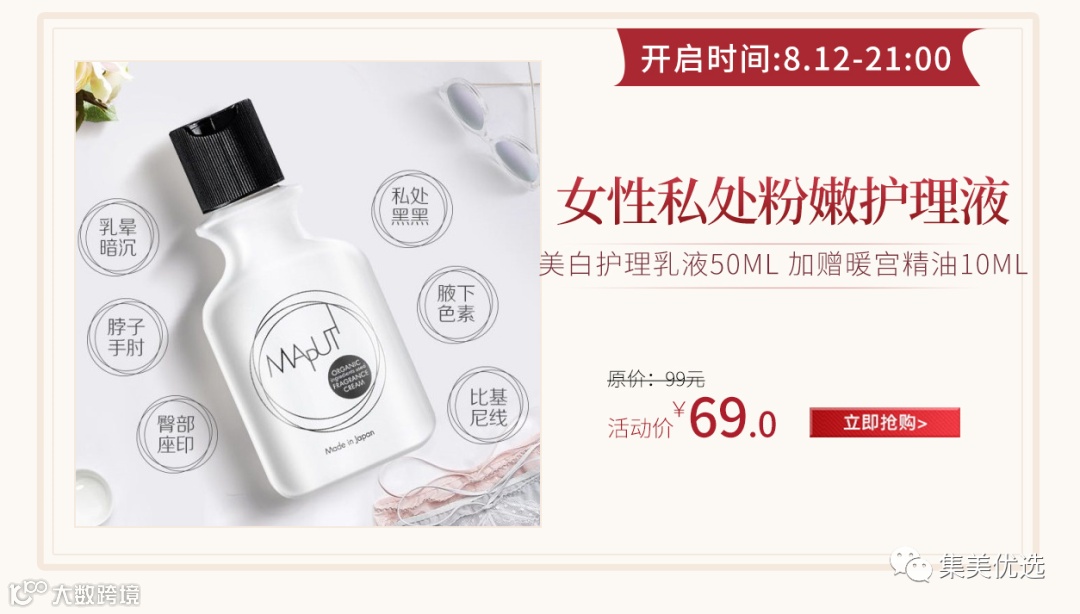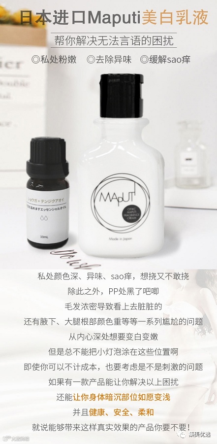 【大牌团购】日本MAPUTI女性私处粉嫩去黑色素美白护理乳液50ml 加赠暖宫精油10ml 原价:99元 VIP /黑卡M1会员 福利补贴价:69元 这个夏天,