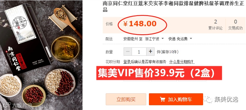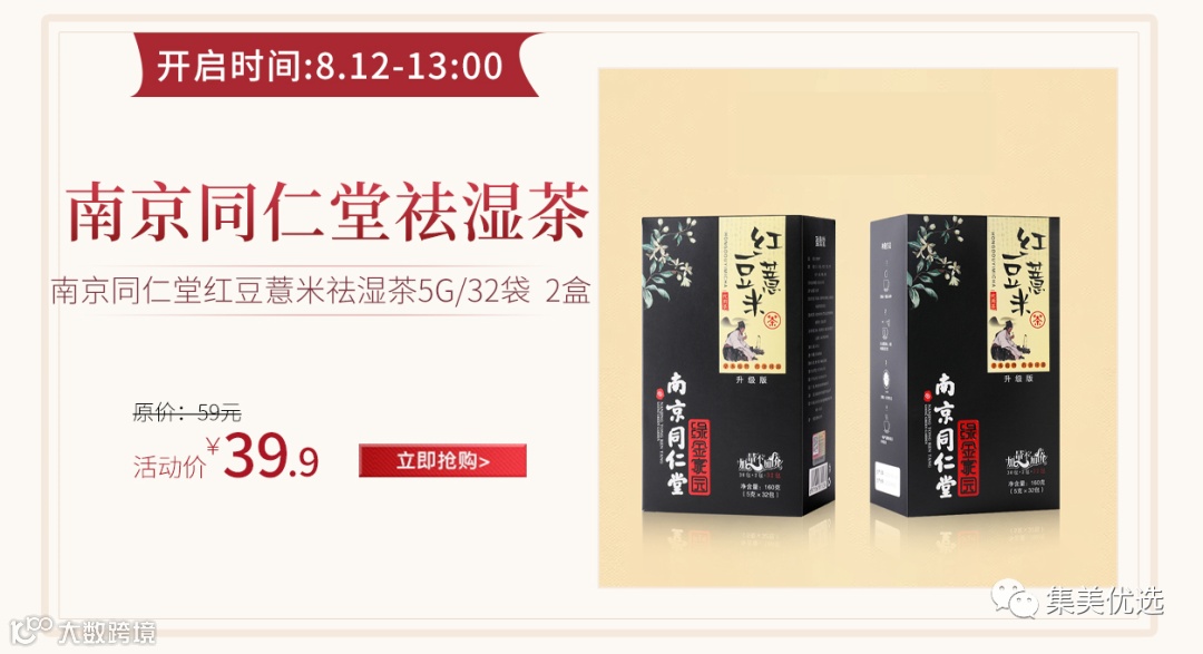 【大牌团购】南京同仁堂红豆薏米祛湿茶5g/32袋 2盒 原价:59元 VIP /黑卡M1会员 福利补贴价:39.9元
