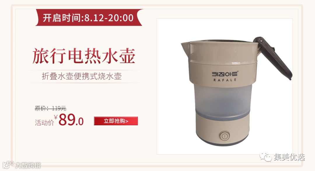 【限时秒杀】韩国kitchen art旅行电热水壶折叠水壶便携式烧水壶 原价:119元 VIP /黑卡M1会员 福利补贴价:89元