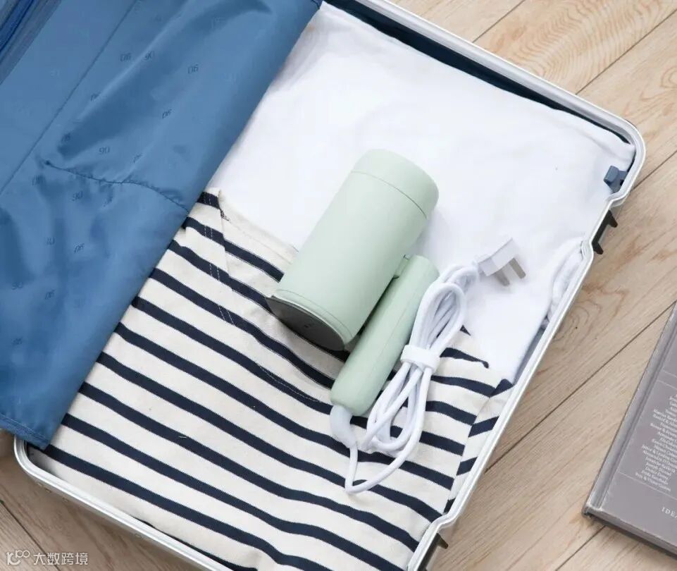 还有可折叠设计,将手柄轻轻一扣,挂烫机就立马变小。