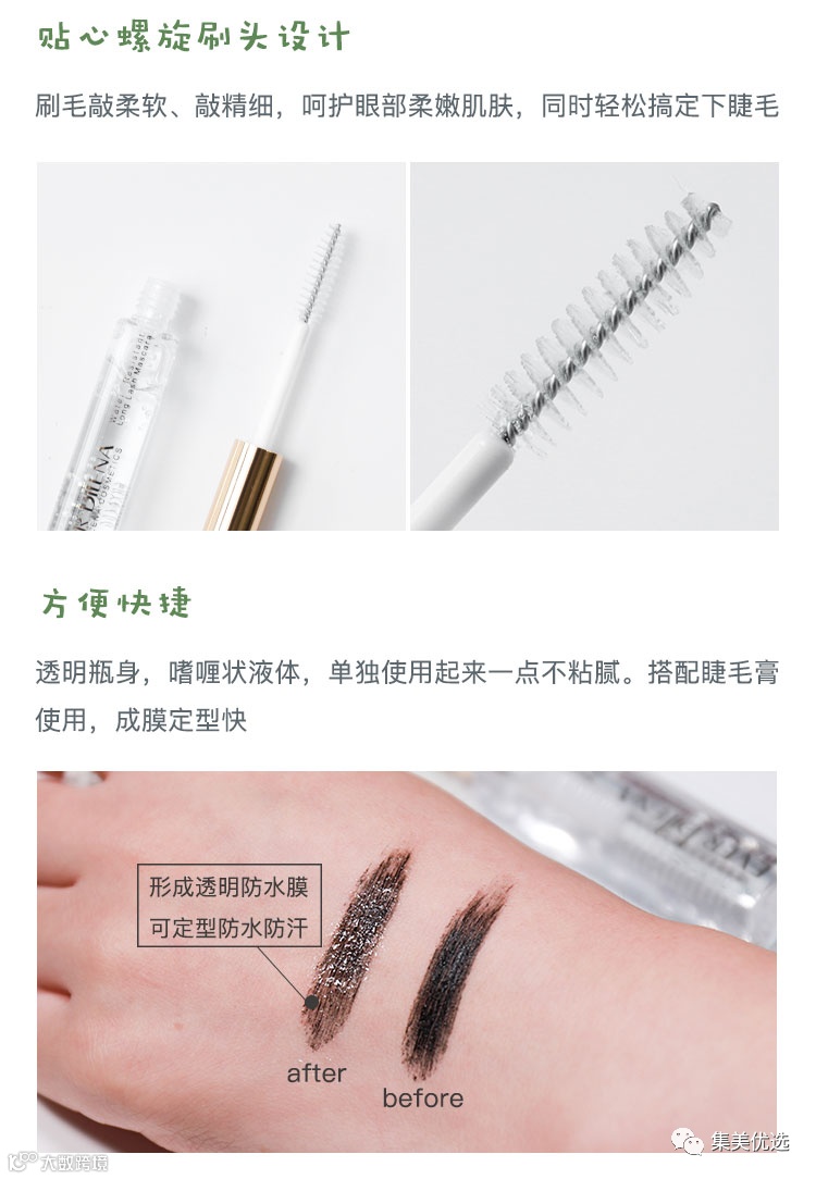 防止睫毛膏晕掉哦!日本可是很流行的!在睫毛膏完全干透后刷涂,睫毛再不会出现“蟑螂腿”情况,一整天睫毛不晕开。