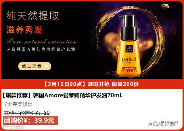 超级火的爱茉莉护发精油70ml,针对因烫染而造成的发质损伤!爱茉莉护发精油在洗后的头发上涂抹,一点也不油腻。能感觉到涂上后头发有垂重感尤其烫发的不会感到头发毛躁轻飘。保湿滋润,改善分叉,营养修复,恢复弹力,改善干燥,改善毛躁,赋予活力,使用后7天就能看到明显的效果!