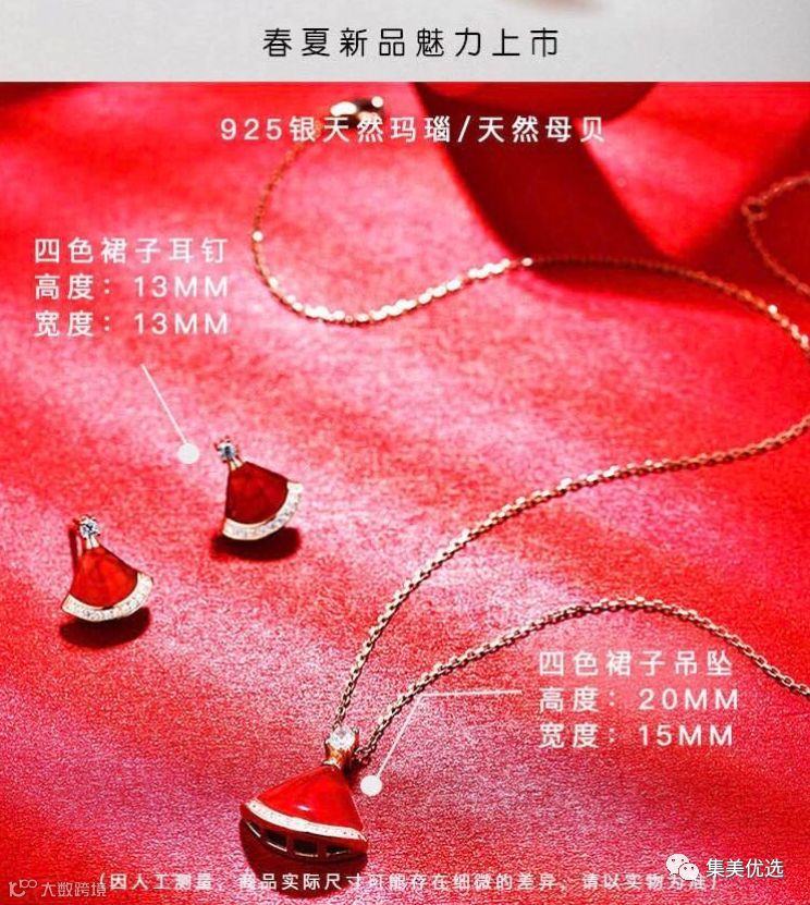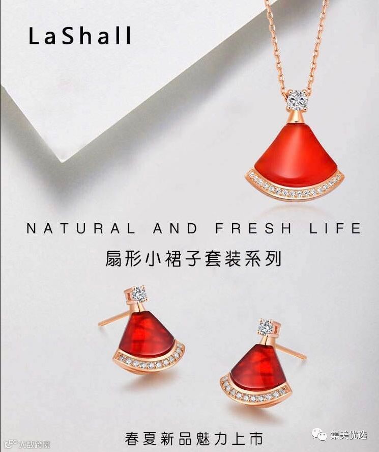 【团购大福利来啦!】city show天然宝石时尚扇形小裙子项链/耳饰系列明星网红款 白色、红色、 墨绿款