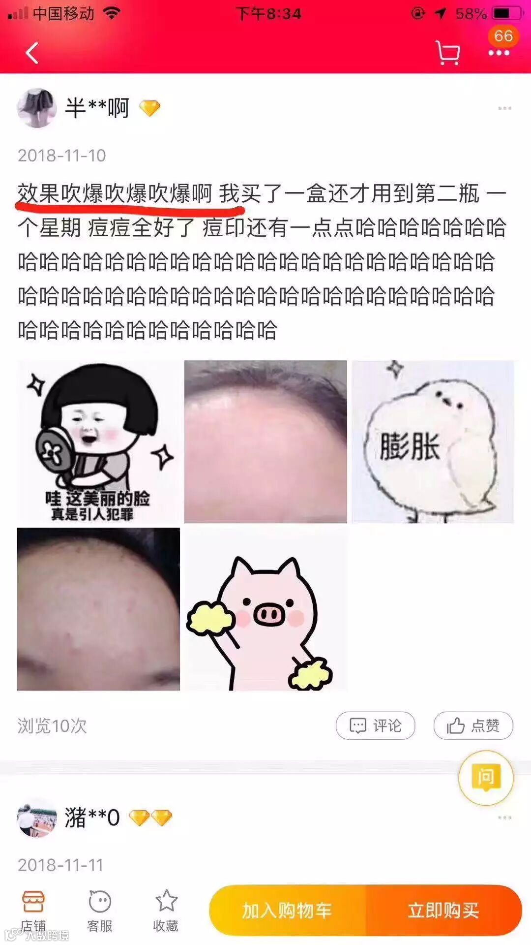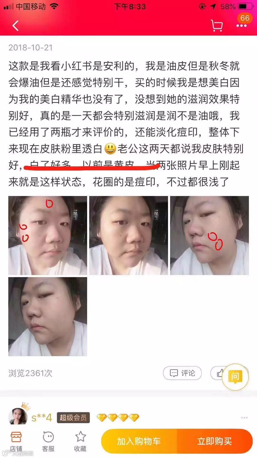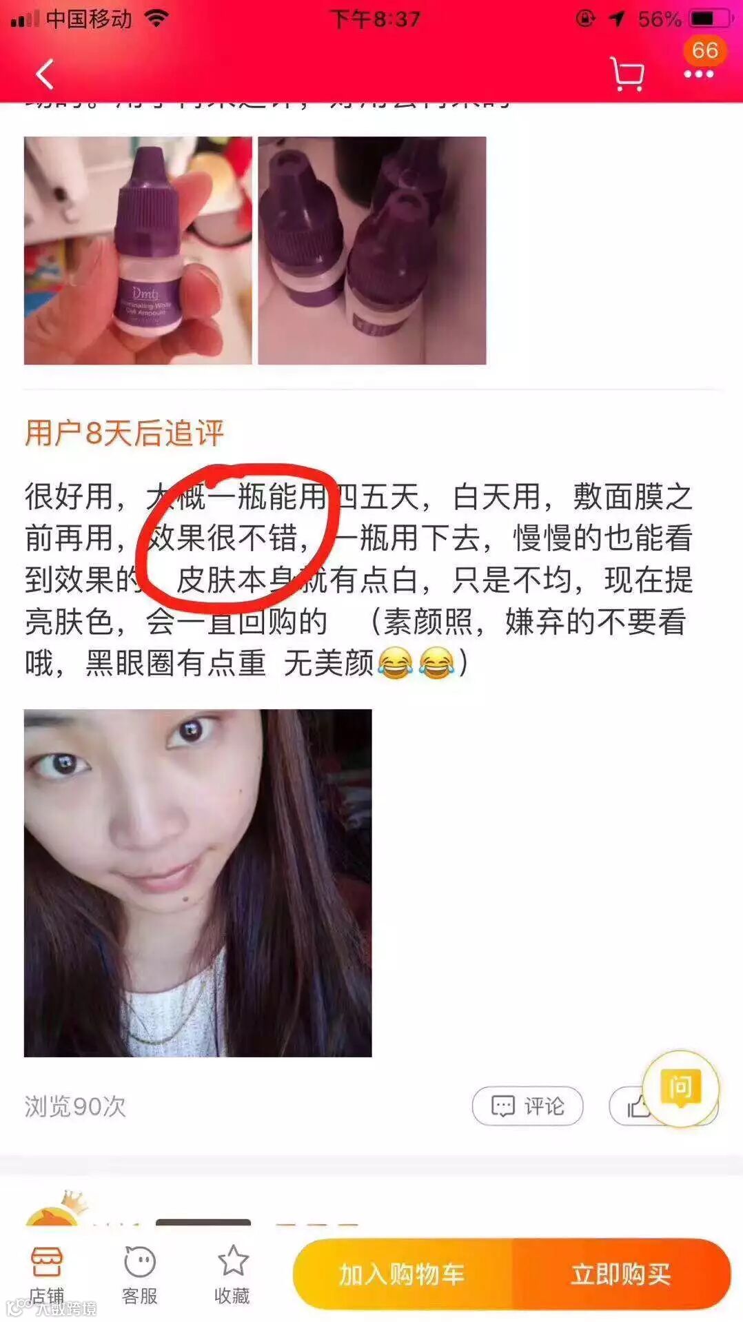 效果不是吹的 真的很好吸收的呀 而且不会闷痘这是我很喜欢的一点 坚持使用肤色真的会白 提亮效果超级明显惹