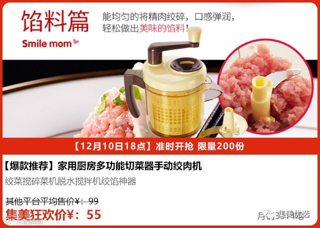 居家必用集万千厨艺于一身,您需要的是轻松而精致的生活。家用厨房多功能切菜神器。绞肉机+碎菜器+辅食机,好用又好洗,再也不用提心吊胆,在外面买肉馅了。每家都需要的多功能料理器烹饪、辅食、蔬果汁轻松搞定释放想象力开启生活新体验~