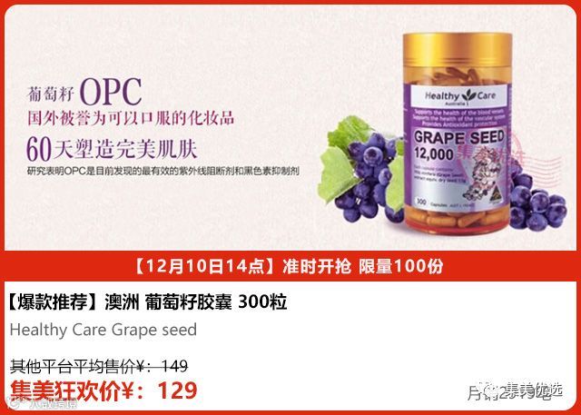 澳洲Healthy Care Grape seed 葡萄籽胶囊 300粒