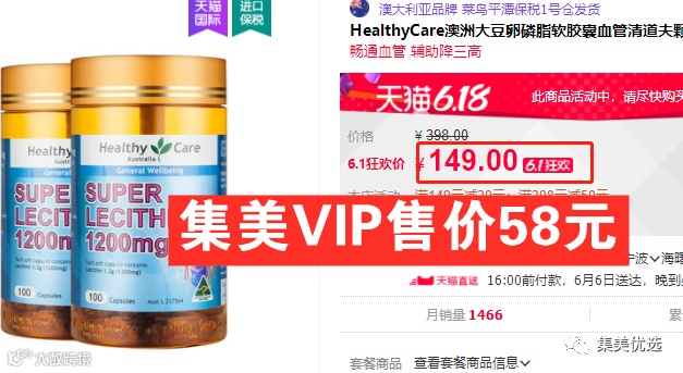 【年中大促】澳洲 Healthy Care 大豆卵磷脂软胶囊 100粒 原价:99元 VIP /黑卡M1会员 福利补贴价:58元