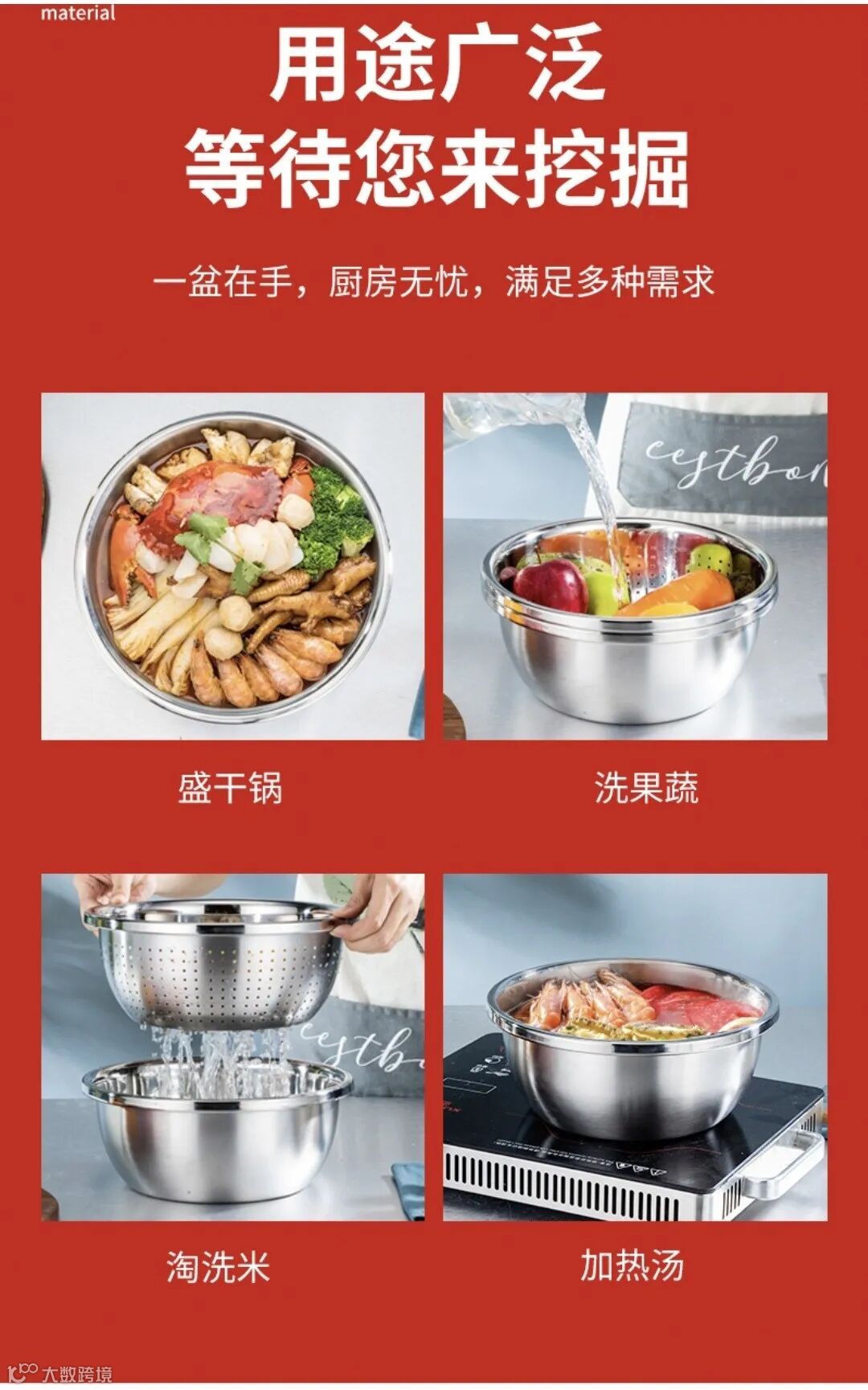 304不锈钢食品级家用厨房盆加厚