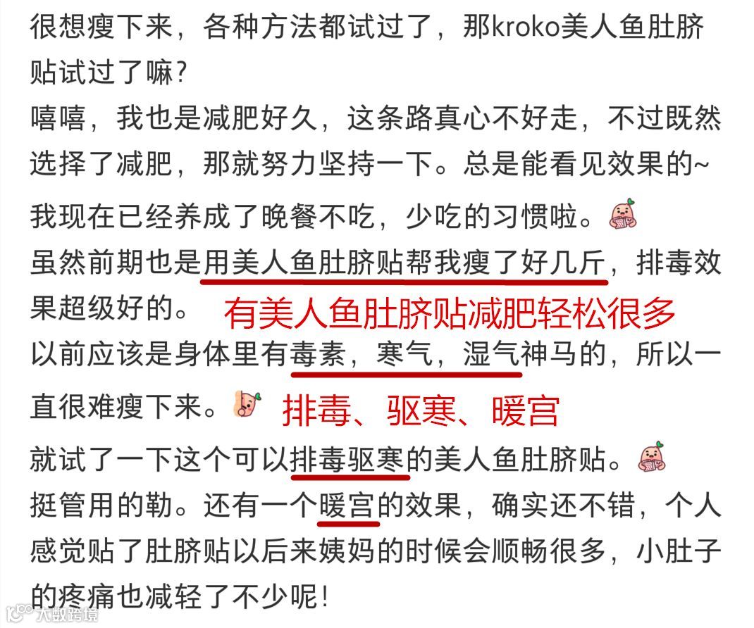 KROKO美人鱼肚脐贴,就是通过开穴通“三淤”加快人体新陈代谢来消耗热量。