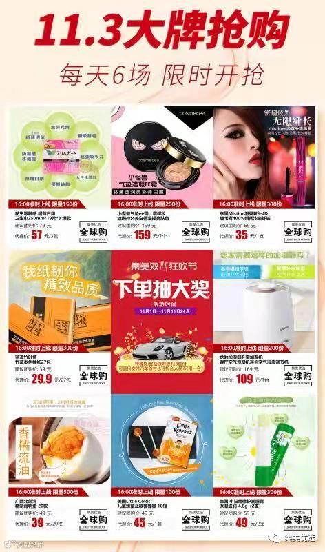 集美双11狂欢节!16点会场上架8款爆款商品,全部成本价,数量有限! 集美会员纯福利,不容错过!心仪的商品可下滑浏览商品简介哦!