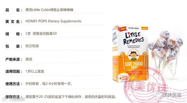 美国Little Remedies蜂蜜止咳棒棒糖来啦~ [咳嗽又不爱吃药的小朋友的福音] 天然蜂蜜制成,富含锌和维生素C。没有药物成分, 宝宝可以放心食用,有效缓解咳嗽与咽痛。《 爸爸回来了》吴尊女儿吃的就是这款,可以缓解咳嗽以及喉咙不适,没有药物成分,宝宝可以放心服用,最大的好处就是针对不肯吃药的小朋友。平时稍有不适也可以吃哦,天然蜂蜜无副作用~