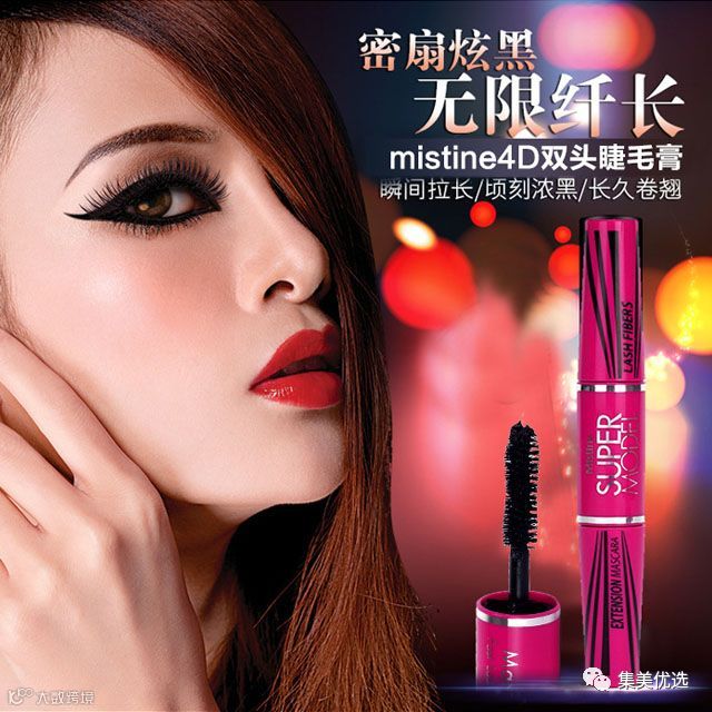 泰国mistine4D睫毛膏,一头是毛绒纤维、一头是睫毛膏,三步打造羽翼般浓密纤长睫毛 即使是最短最细的睫毛也能瞬间浓密纤长,高浓度的Lash Multiplier养护精华配方能重建睫毛强韧质地,修护受损睫毛,令睫毛丰盈浓密纤长,防水不晕染,又长又浓又卷翘,持久度高!