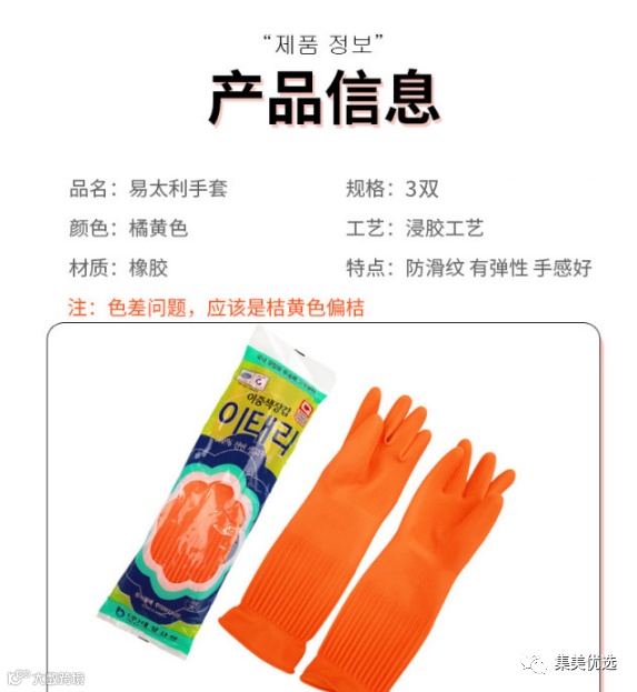 戴上这款手套,透气不闷,干活舒舒服服的。韩国原装进口,集美冰点价39.9元3双,一双厨房用,一双洗衣服,一双卫生间用。