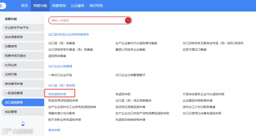 路径:登录电子税务局,点击【我要办税】-【出口退税管理】-【出口退(免)税申报】-【免抵退税申报】
