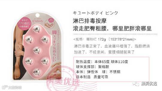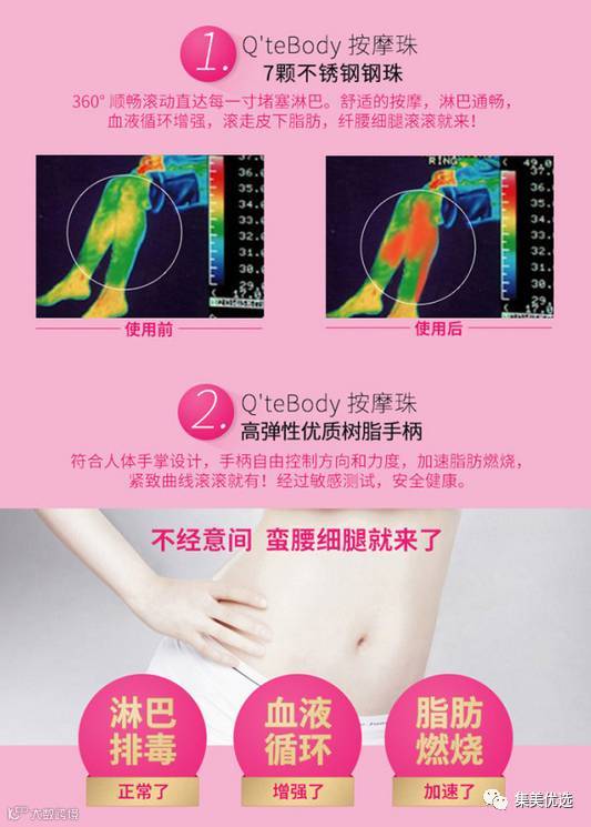 日本Qtebody多功能按摩珠滚珠办公室淋巴排毒瘦小腿部按摩器 粉色瘦腿瘦身