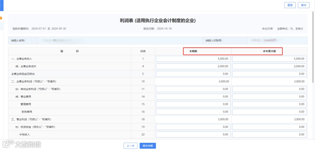 ※按季申报:“本期数”填报纳税人当季数据,“本年累计数”填报纳税人当年1月1日至填报截至所属季度最后一日的累计数。