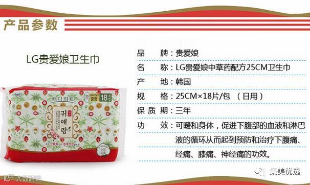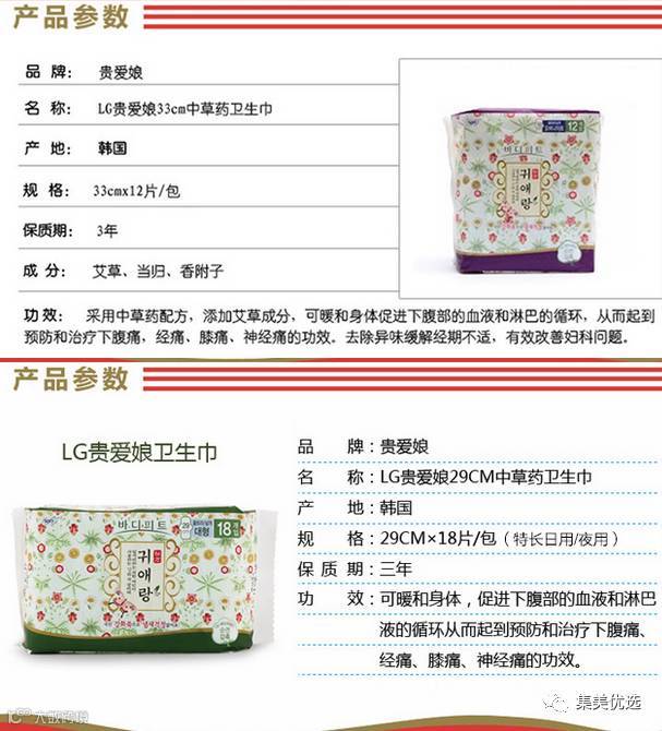 韩国LG贵爱娘中药配方卫生巾3包