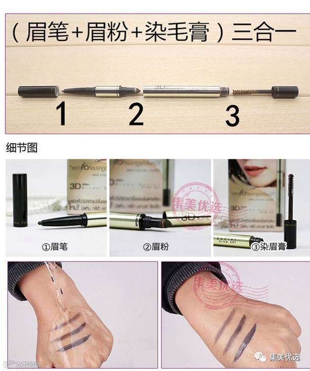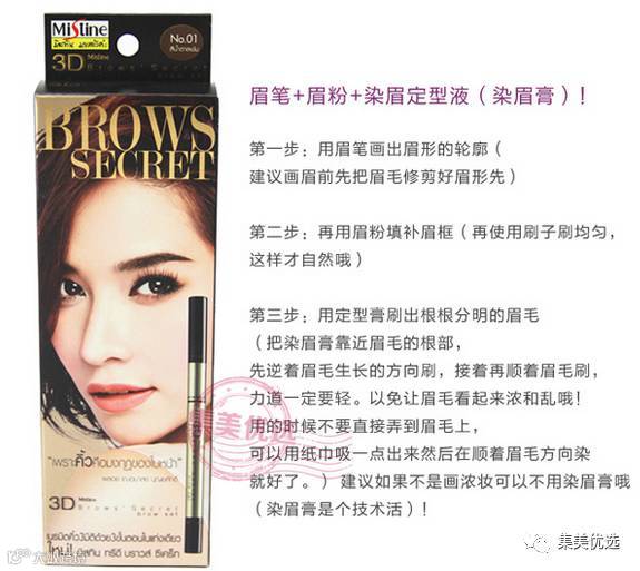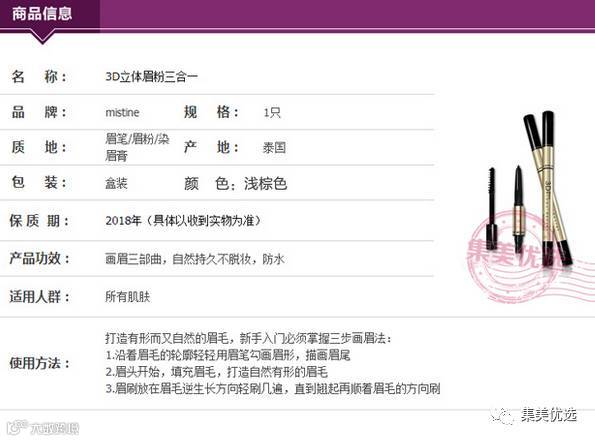 泰国原装mistine 3D立体眉笔 一字眉笔眉粉染眉膏三合一