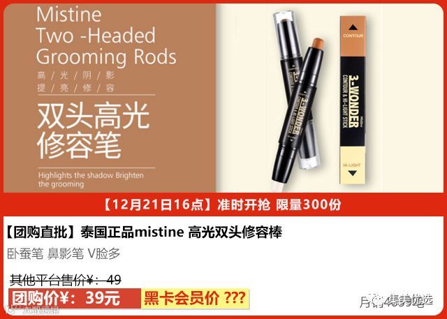 泰国Mistine高光修容笔双头组合,可使用在额头、T区、脸颊、锁骨处,设计很贴心,可以描绘所需轮廓,轻轻晕染开来即可。膏状质地让妆容加贴合肌!