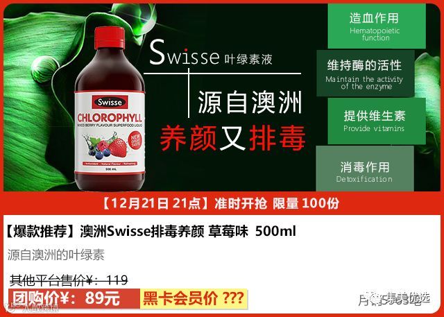 Swisse叶绿素液草莓味清体排毒,调节肠胃,改变酸性体质,改善造血功能,提供维生素,美容养颜,每天10ml!比吃2斤的青菜还要管用,特别适合易上火、便秘、湿气重的人群痘痘、口气、体味一扫空暗疮、色斑、便秘有特效叶绿素是良好的清血剂。