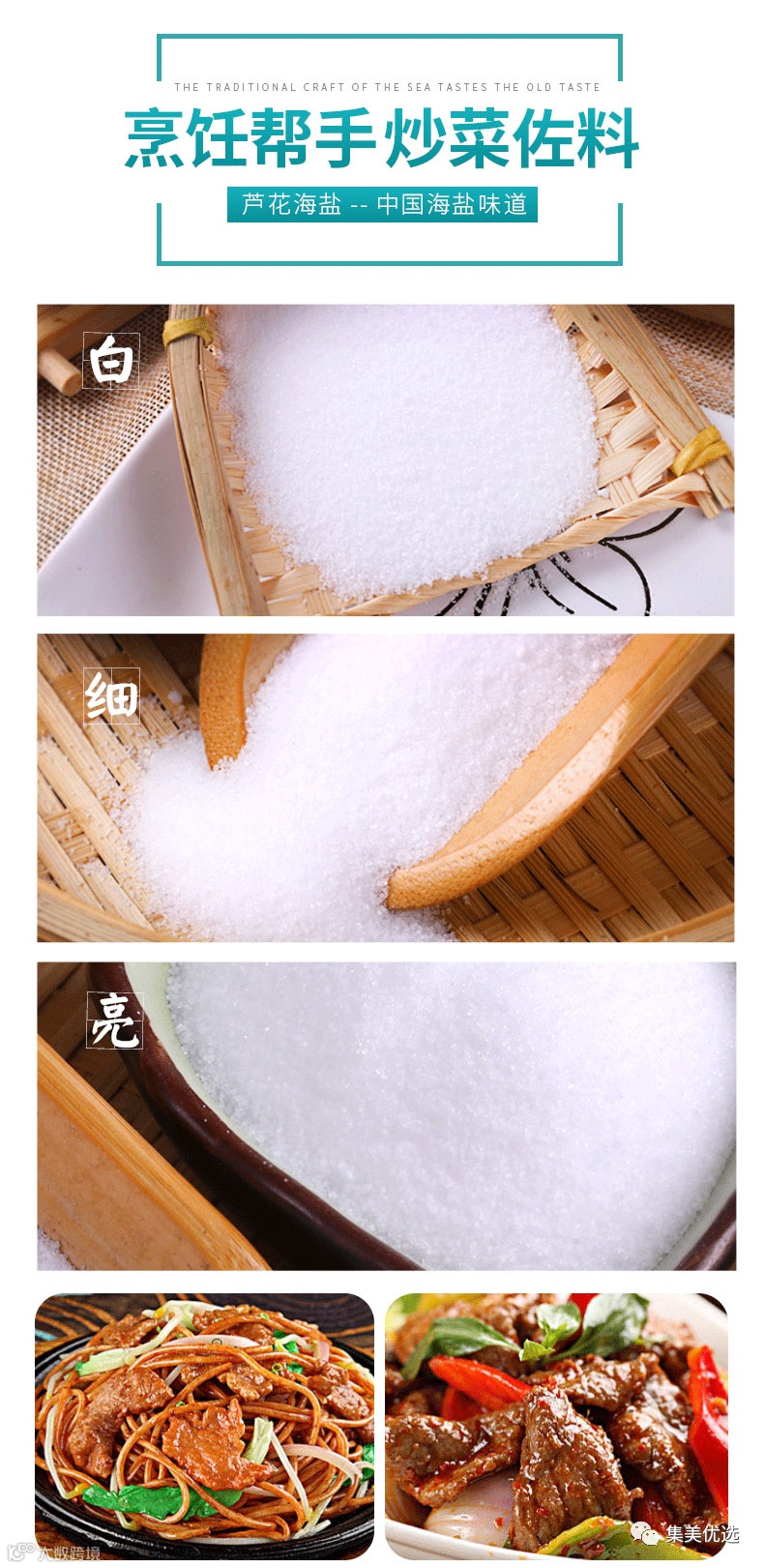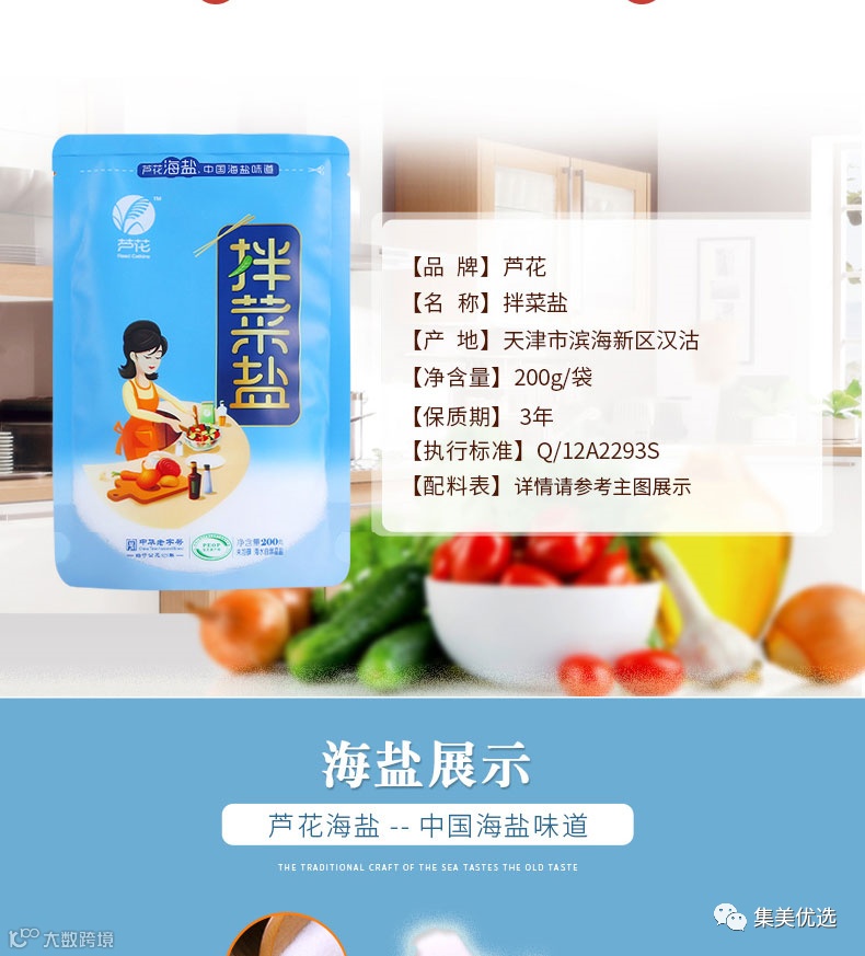 拌菜盐,细腻微小拌菜易融化!平常在家拌凉菜是不是经常会出现化不开的那种还吃了一大口!齁咸齁咸的那种拌菜盐口感出众区别于普通矿盐的“死咸”,海精盐咸度温和、细腻,鲜美度甚至可以代替味精,那种充分释放了独属于大海的天然鲜美,并带出食材本身多层味道的绝妙美味!!