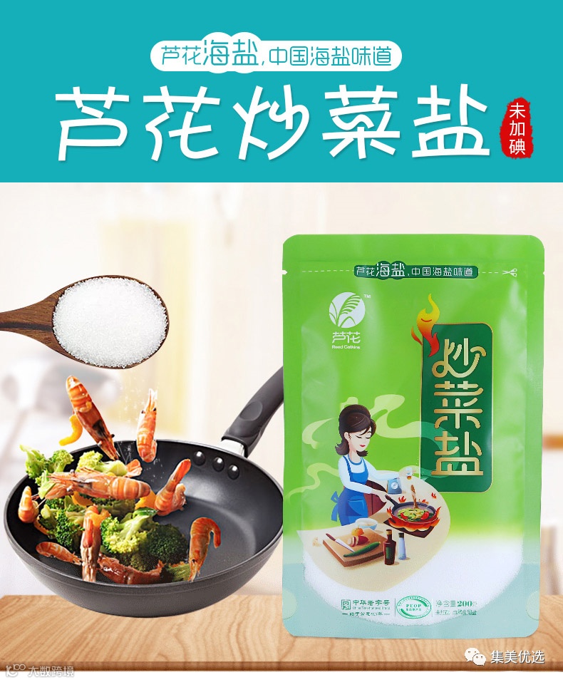 芦花 无碘海盐炒菜盐200g*6包(送拌菜盐2袋 送煲汤盐2袋)共10包