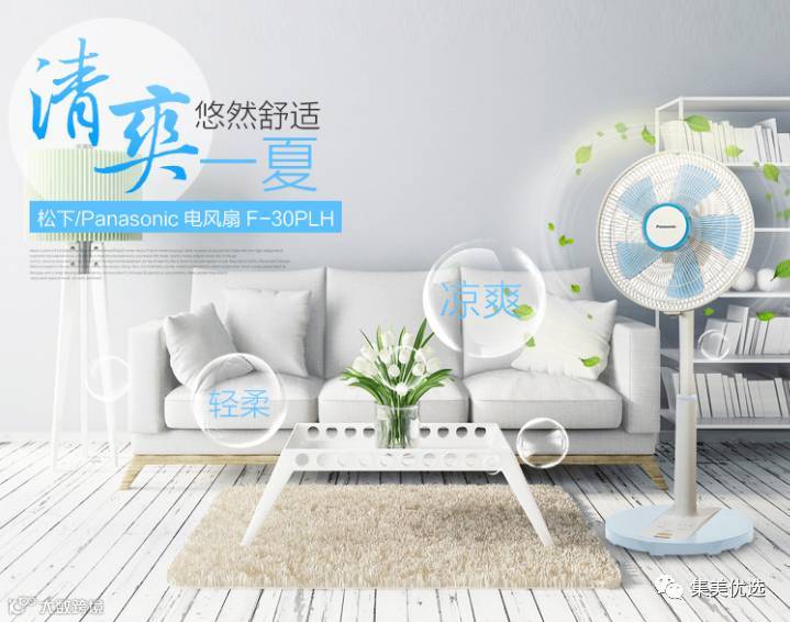 Panasonic松下电风扇F-30PLH 五叶无线遥控落地扇 落地式风扇静音 三段风速 天蓝色
