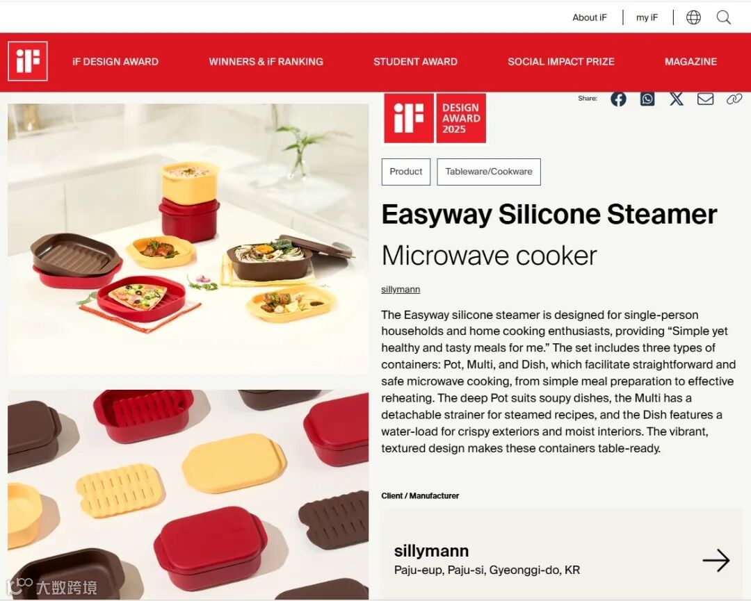 sillymann系列很多,今天给大家介绍获得德国iF DESIGN AWARD 2025的硅胶蒸煮餐具!