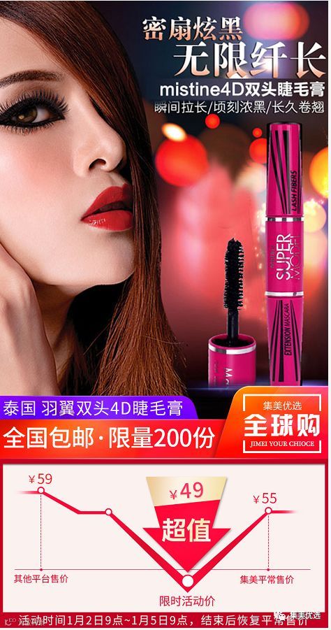 Mistine4D双头睫毛膏400%瞬间浓密睫毛膏,三步打造羽翼般浓密纤长睫毛。即使是最短最细的睫毛也能瞬间浓密纤长,高浓度的Lash Multiplier养护精华配方能重建睫毛强韧质地,修护受损睫毛,令睫毛丰盈浓密,泰国MM们的电眼少不了这样一款神奇睫毛刷哦!