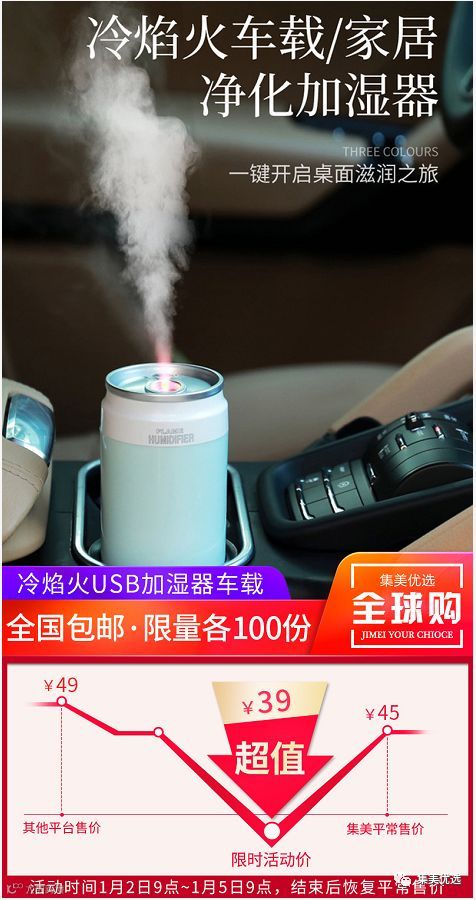 【福利团购】冷焰火usb加湿器车载/家居可爱便携式