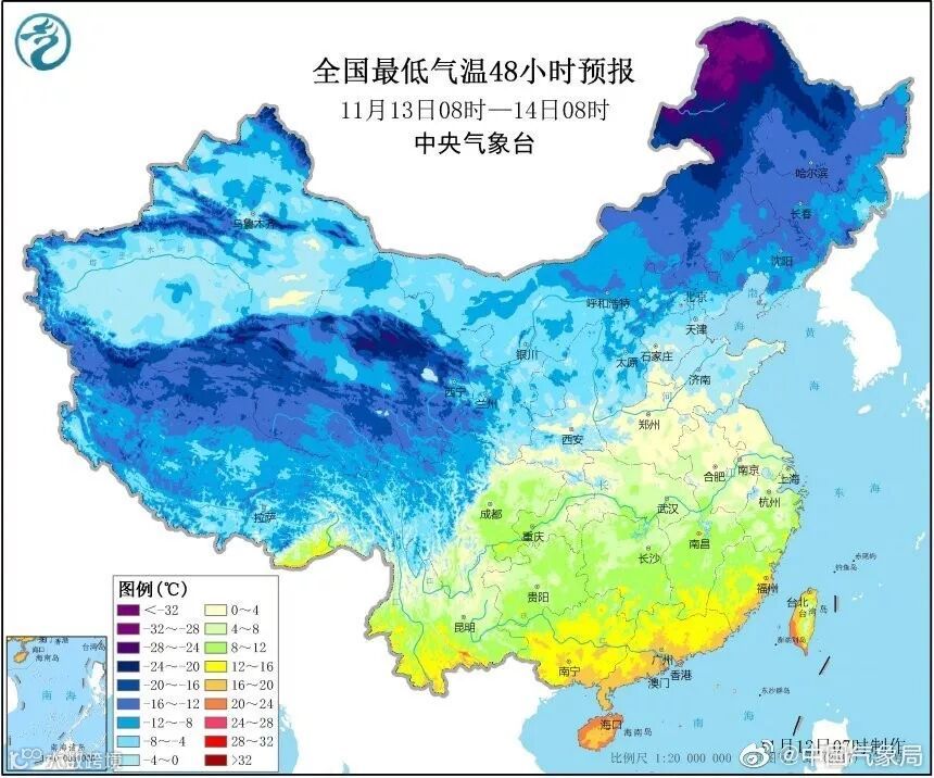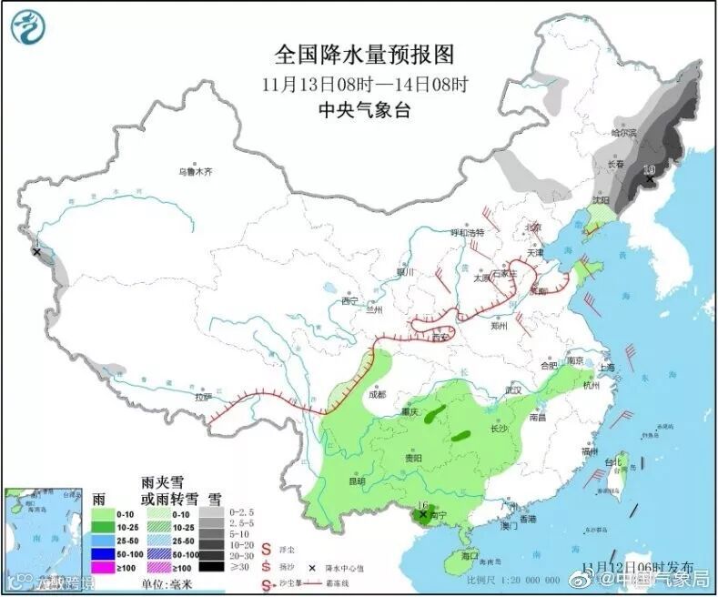 据中央气象局预测,11月11日至14日,新一股强冷空气将自西向东影响我国大部,长江中下游及其以北地区有4~6级风,平均气温将下降6~10℃。