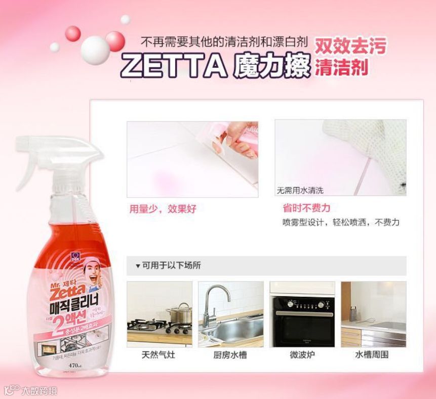 Mr.Zetta是韩国企业DBK旗下的龙头品牌,今天要介绍的这一款魔力擦强效清洁剂也位列畅销TOP5。它被称为厨房清洁剂中的“战斗机”,任何油渍污垢,只要遇到这款具有double功效的魔力擦强效清洁剂,一定会“哭着说再见”!